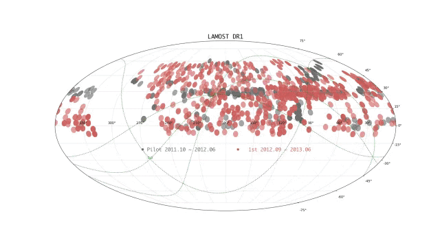 图1 LAMOST先导巡天和正式巡天六年的天区覆盖图