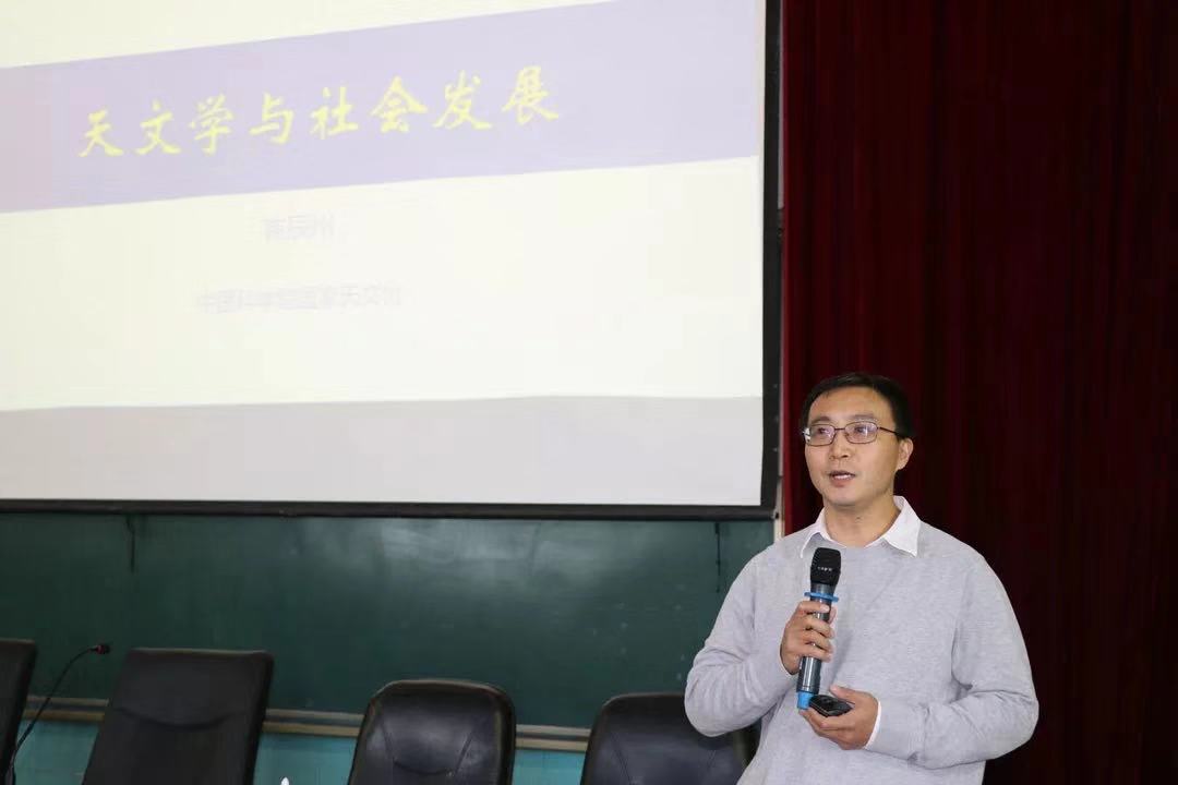 授牌仪式结束后,崔辰州博士为全校师生带来了题为《天文学与社会发展》的科普报告。报告以近年来的天文热点事件为切入点,深入浅出地介绍了天文学在社会发展、科技进步中的重要作用,我国天文事业的发展进程以及天文学对人们生活的影响。