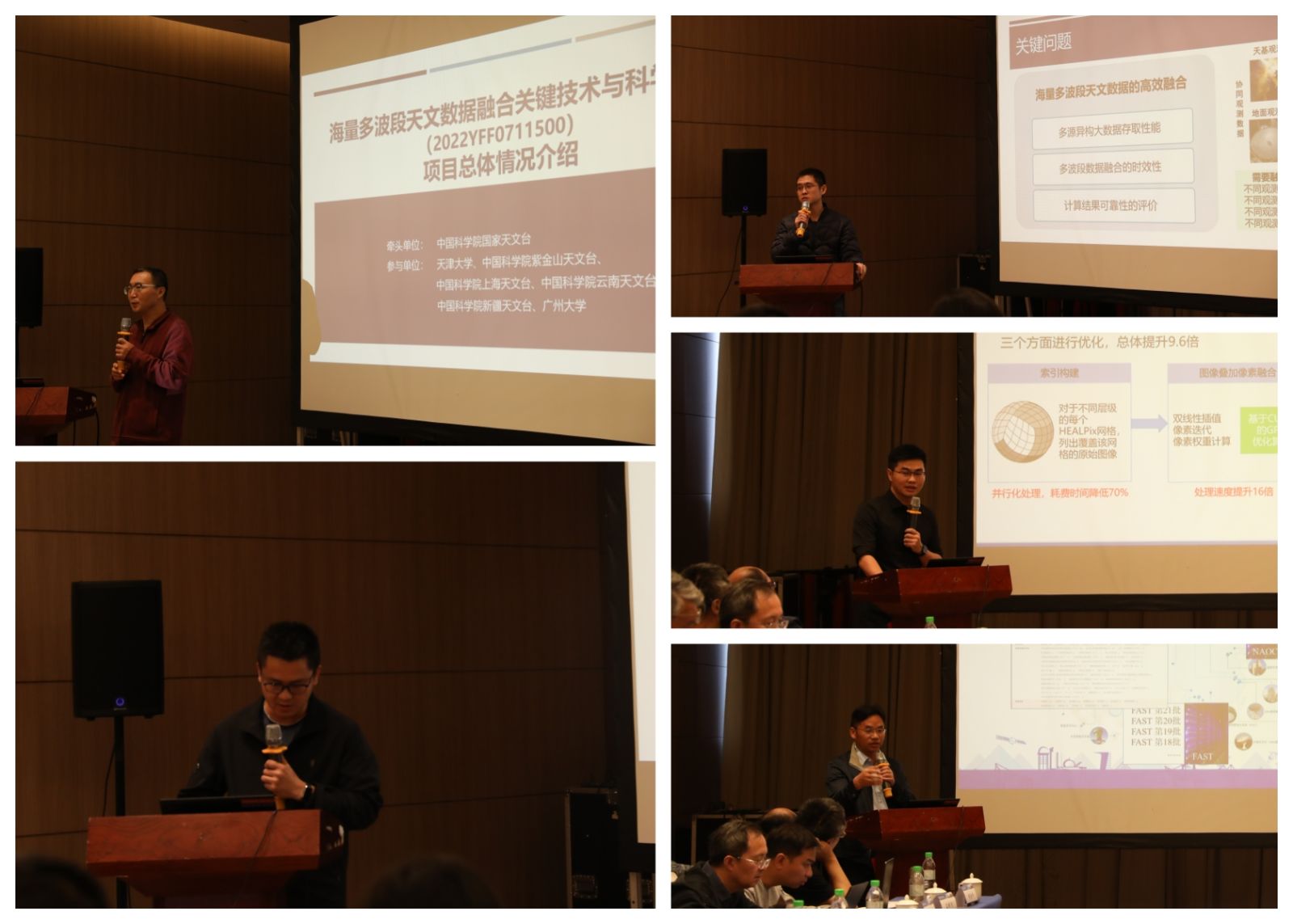 会上,项目组集中汇报了该项目研发的关键技术与阶段性成果。项目负责人崔辰州研究员首先概述了项目总体情况与进展。随后,各课题负责人分别就大规模数据检索及交叉证认、多波段数据融合、科研云平台等方面的技术突破与创新成果进行了汇报。汇报内容紧扣“如何解决用户实际问题”这一主线,不仅展示了项目成果在多个天文研究场景中的实际应用,还进一步阐释了其在未来科学研究中的潜力与价值。