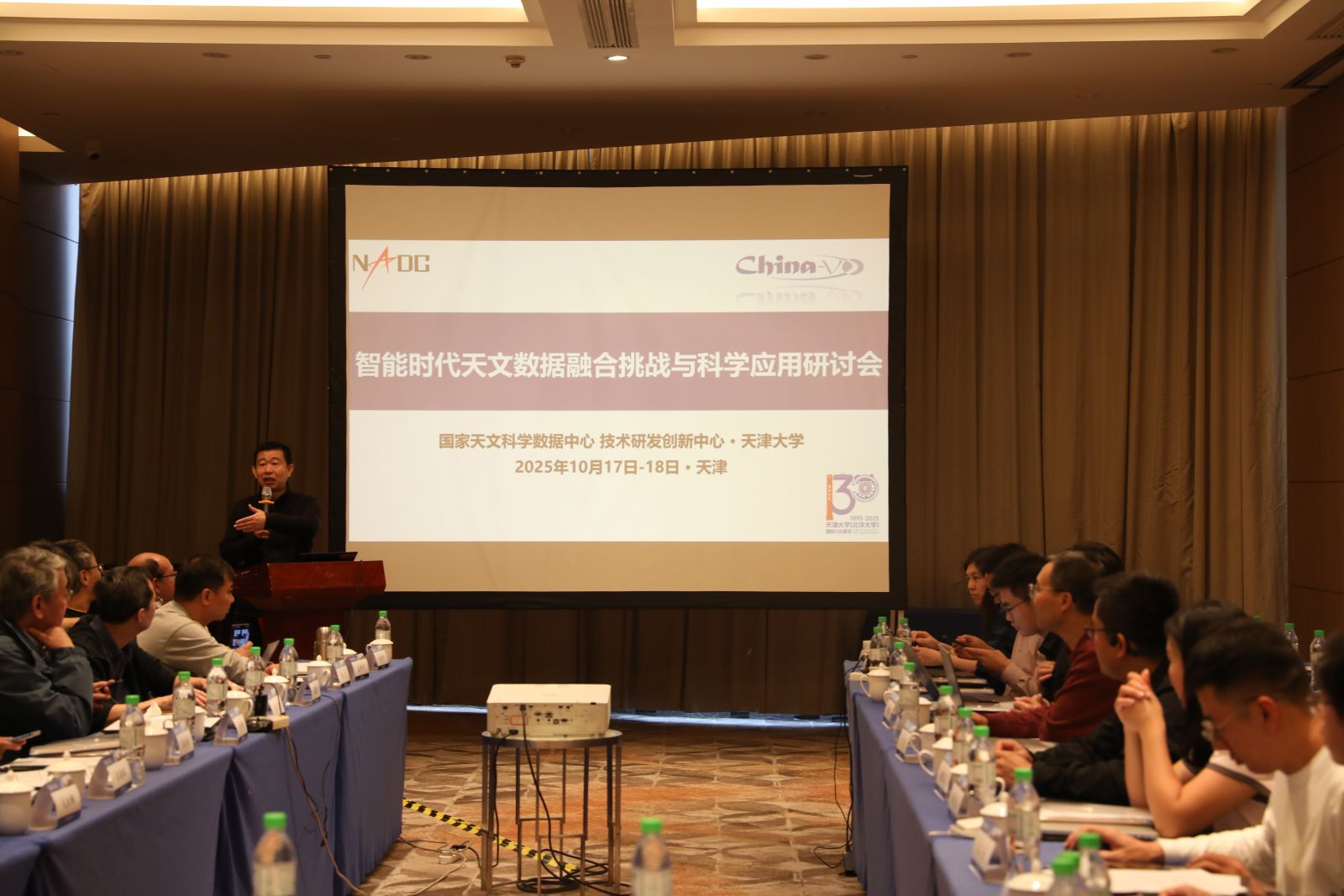 由国家天文科学数据中心牵头主持的国家重点研发计划“海量多波段天文数据融合关键技术与科学应用”项目已进入总结和结题准备阶段,各课题主要研发任务基本完成。为促进项目成果应用、持续高质量支撑天文科学研究,并应对智能时代带来的新挑战,“智能时代天文数据融合挑战与科学应用研讨会”于10月17-18日在天津举行。项目承担单位和参与单位以及来自多所高校的科学用户代表近50人参加会议。