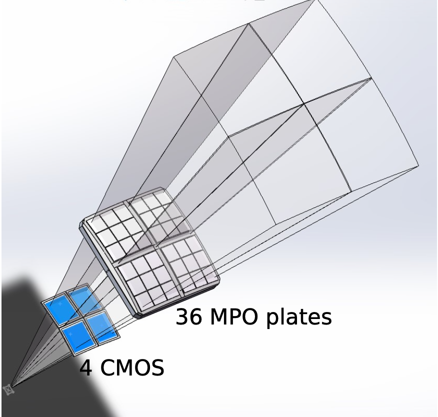 Figure 2 Illustration of the configuration of the focusing mirror system, focal detector array and FoV of LEIA.